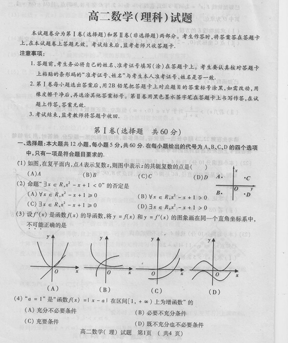 河南省驻马店2013—2014学年高二下学期期终考试(数学理)(扫描版)