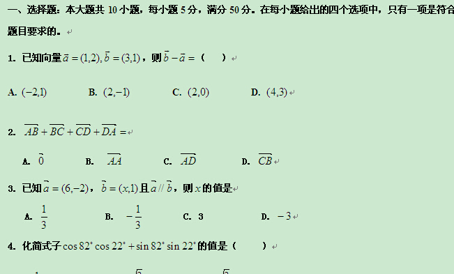 广东省韶关南雄市黄坑中学2013-2014学年高一下学期期末考试(数学理)缺答案