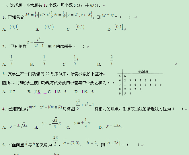 河南省顶级名校2015届高三年级入学定位考试(数学文)