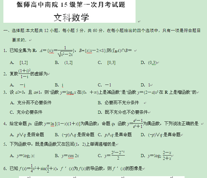 河南省偃师市高级中学南院2015届高三上学期第一次月考(数学文)