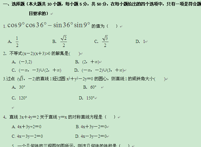 湖北省咸宁市鄂南高级中学2014-2015学年度高二起点考试(数学B类)缺答案