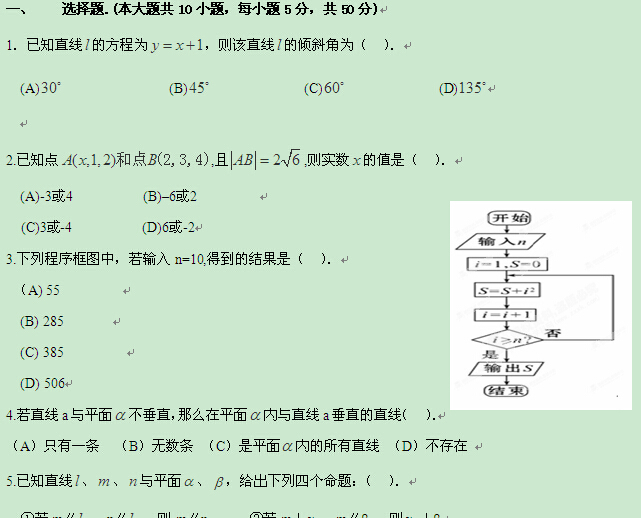 湖北省咸宁市鄂南高级中学2014-2015学年度高二起点考试数学(A类)缺答案