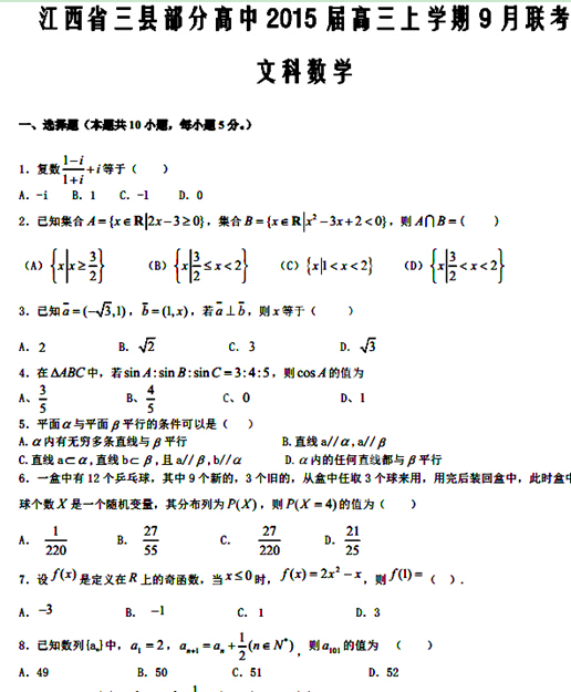 江西省三县部分高中2015届高三9月联考(数学文)扫描版