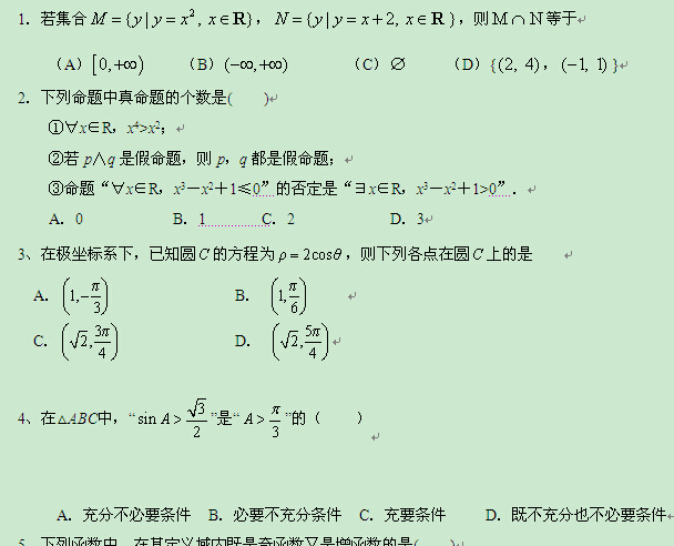 北京市大兴区魏善庄中学2015届高三上学期期中考试(数学理)