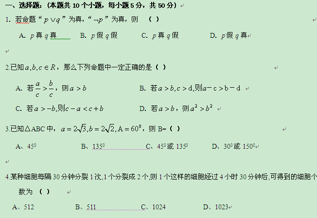 福建省厦门六中2014-2015学年高二上学期期中考试(数学理)