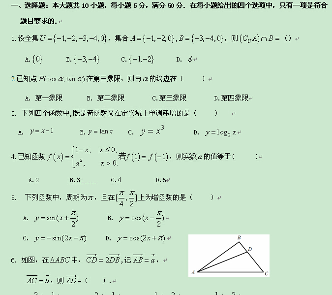 广东省揭阳市一中、潮州金山中学、广大附中2015届高三上学期期中考试(数学文)