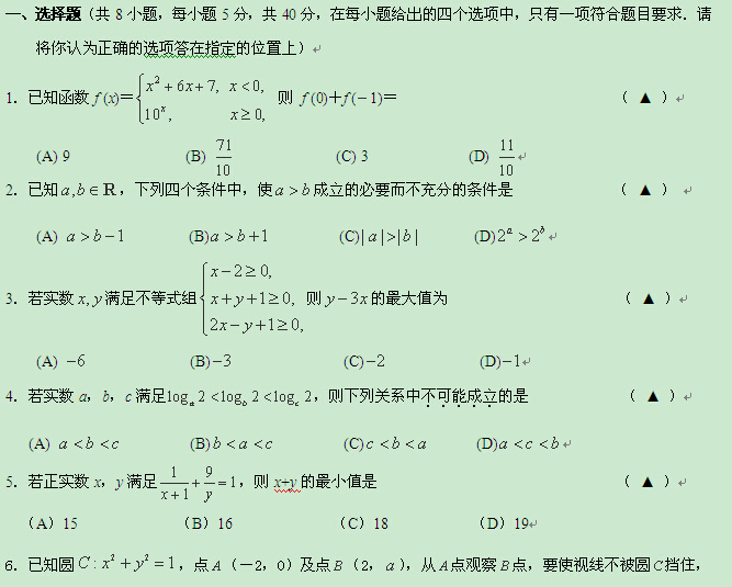 浙江省建人高复2015届高三上学期第三次月考(数学理)