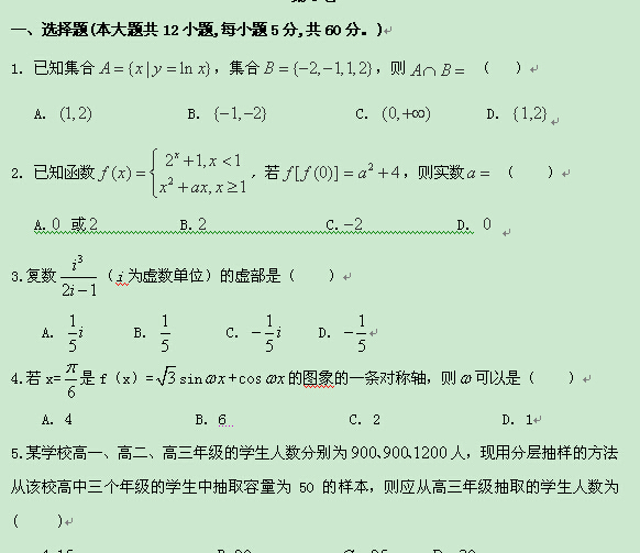 西藏林芝地区第二高级中学2015届高三第二次月考(数学理)