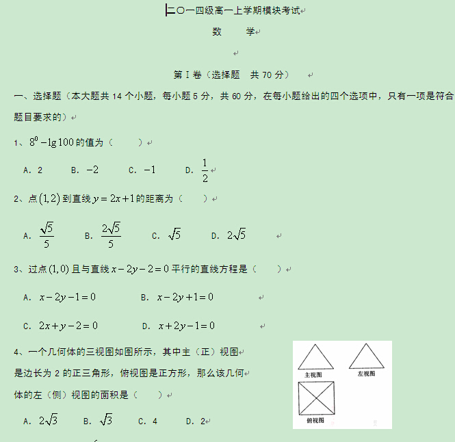 河南省郑州市2014-2015学年高一上学期期末考试(数学)