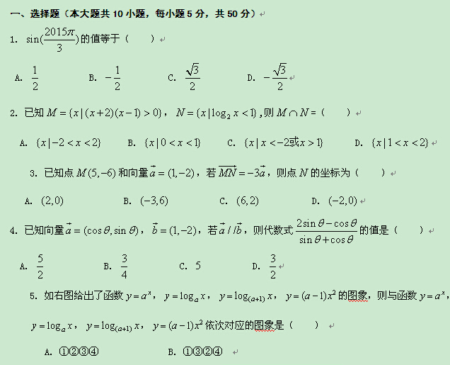 湖北省宜昌市第一中学2014-2015学年高一上学期期末考试(数学)