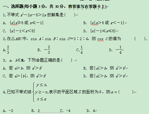 甘肃省天水市秦安县第二中学2014-2015学年高二上学期期末考试(数学文)