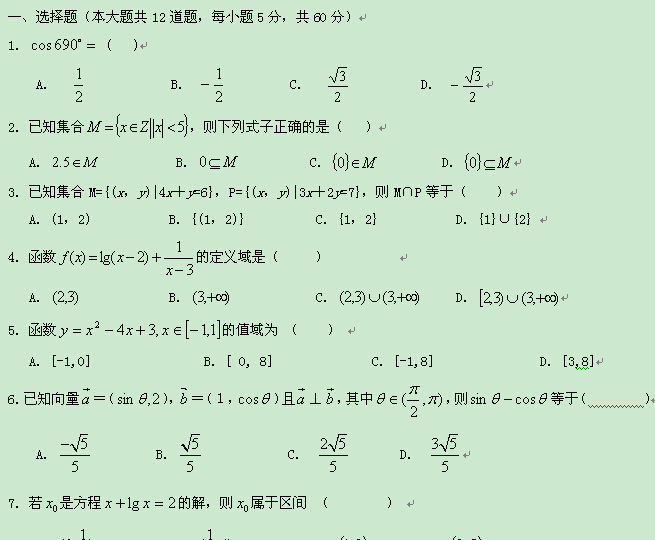 甘肃省天水市秦安县第二中学2014-2015学年高一上学期期末考试(数学)