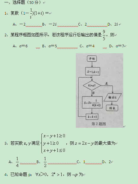 安徽省宣城市2015届高三上学期期末考试(数学理)