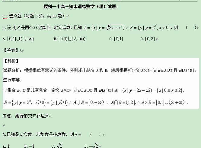 山东省滕州市第一中学2015届高三上学期1月期末统练(数学理)解析版