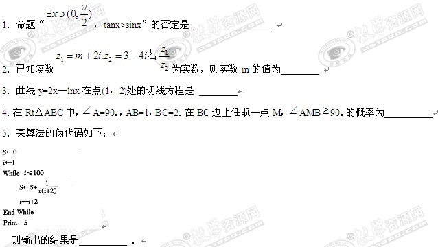 江苏省南通扬州泰州三市2010届高三第二次模拟考试(数学)